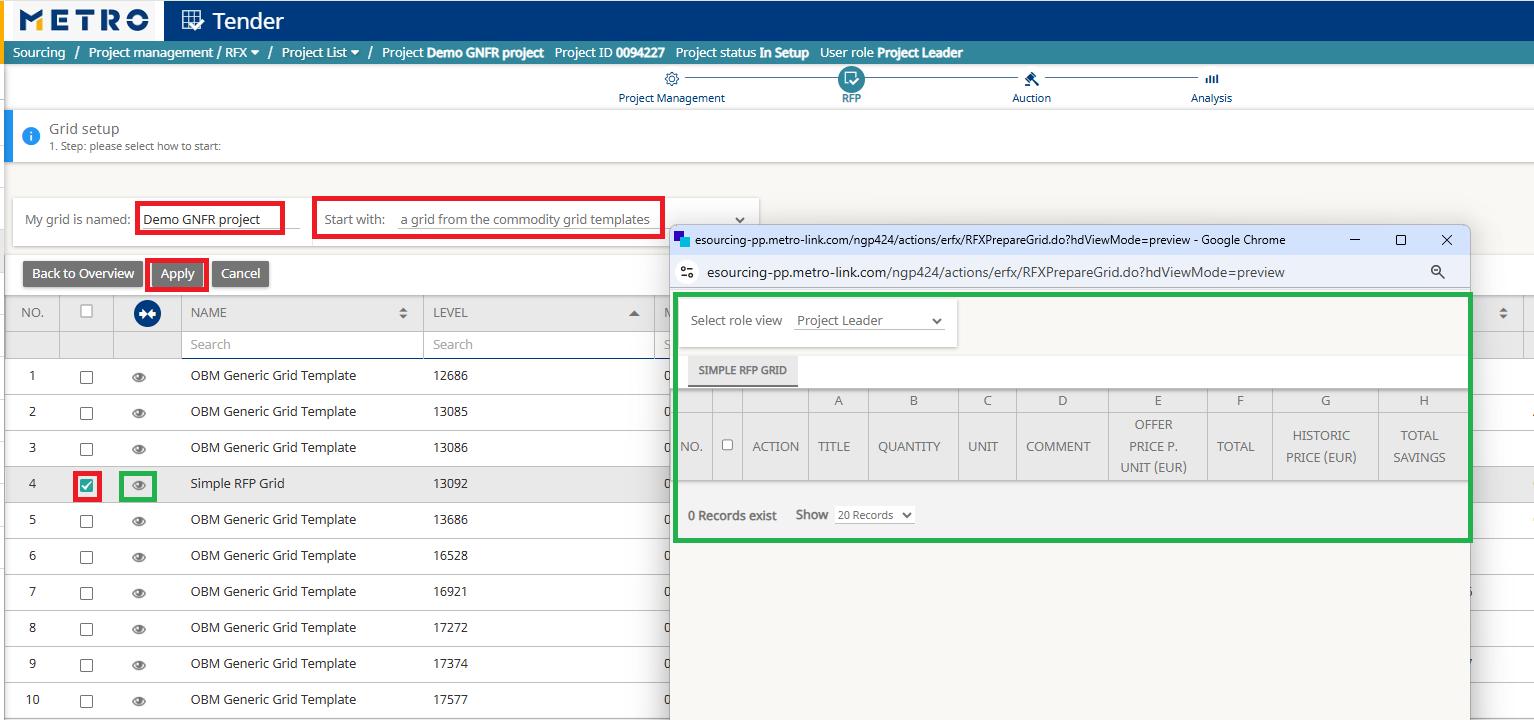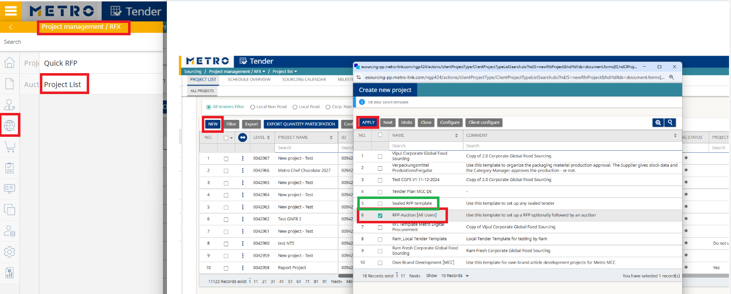 - Search and select the template RFP-Auction [All Users], then click Apply.