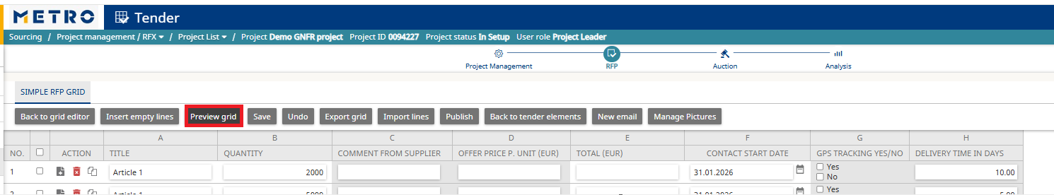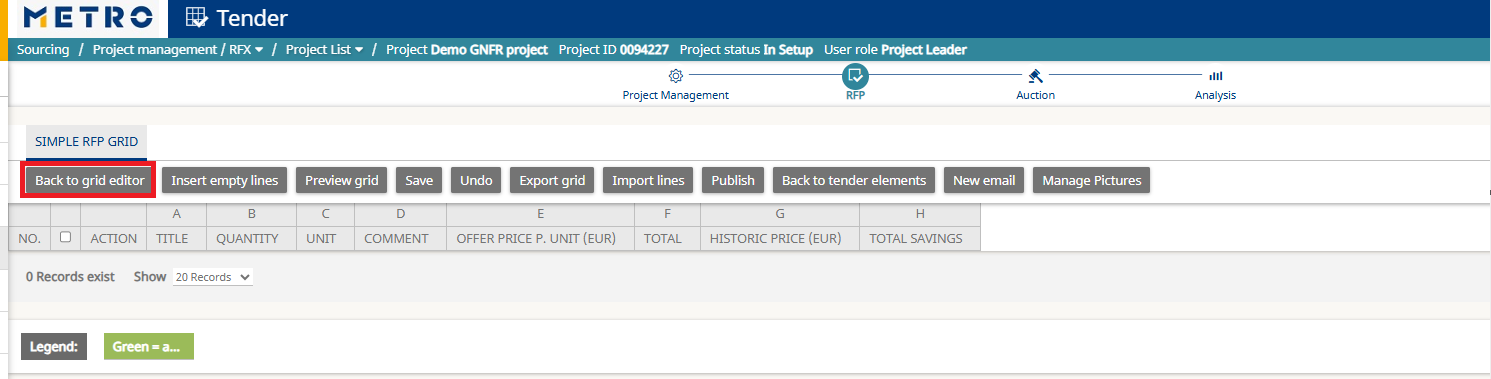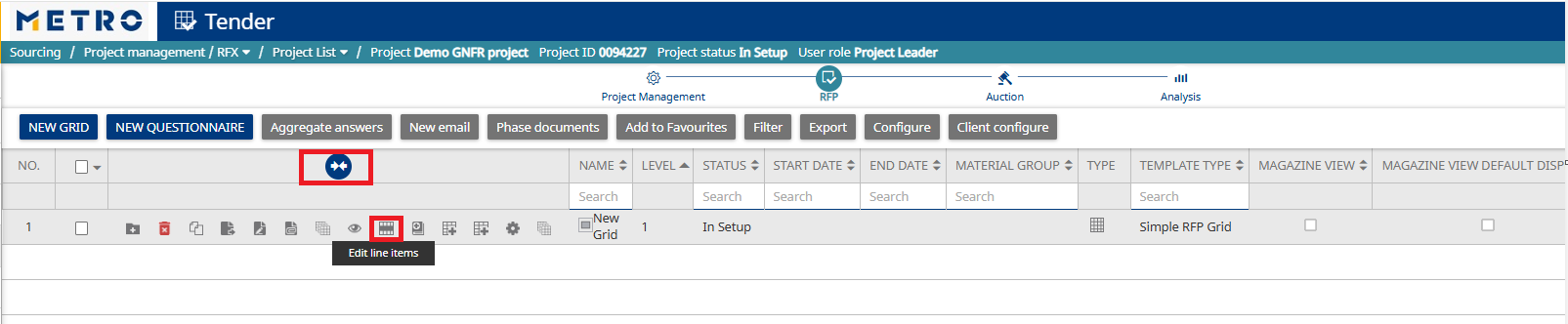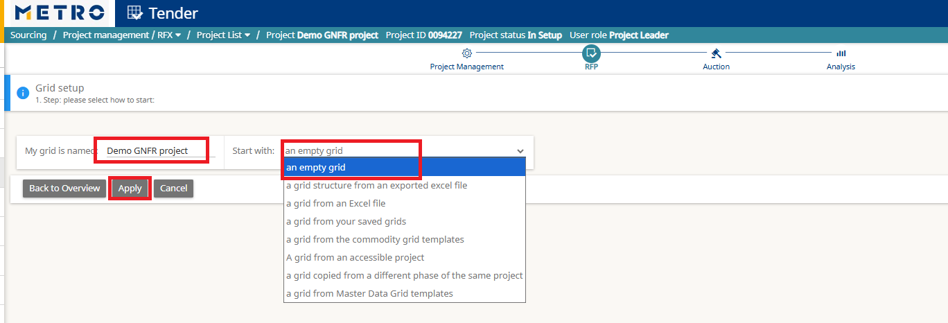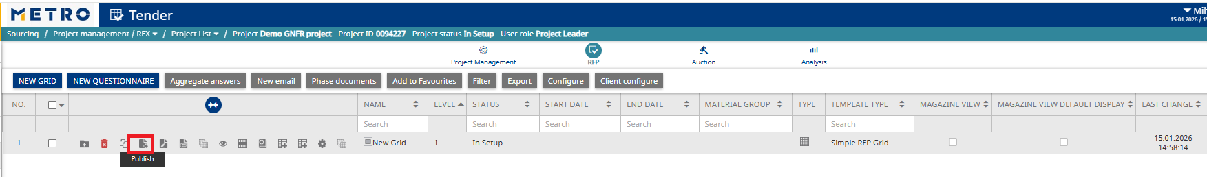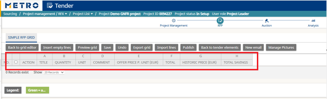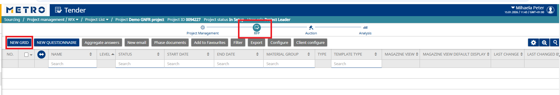 - To set up the RFP grid, go to the RFP tab and select New Grid.