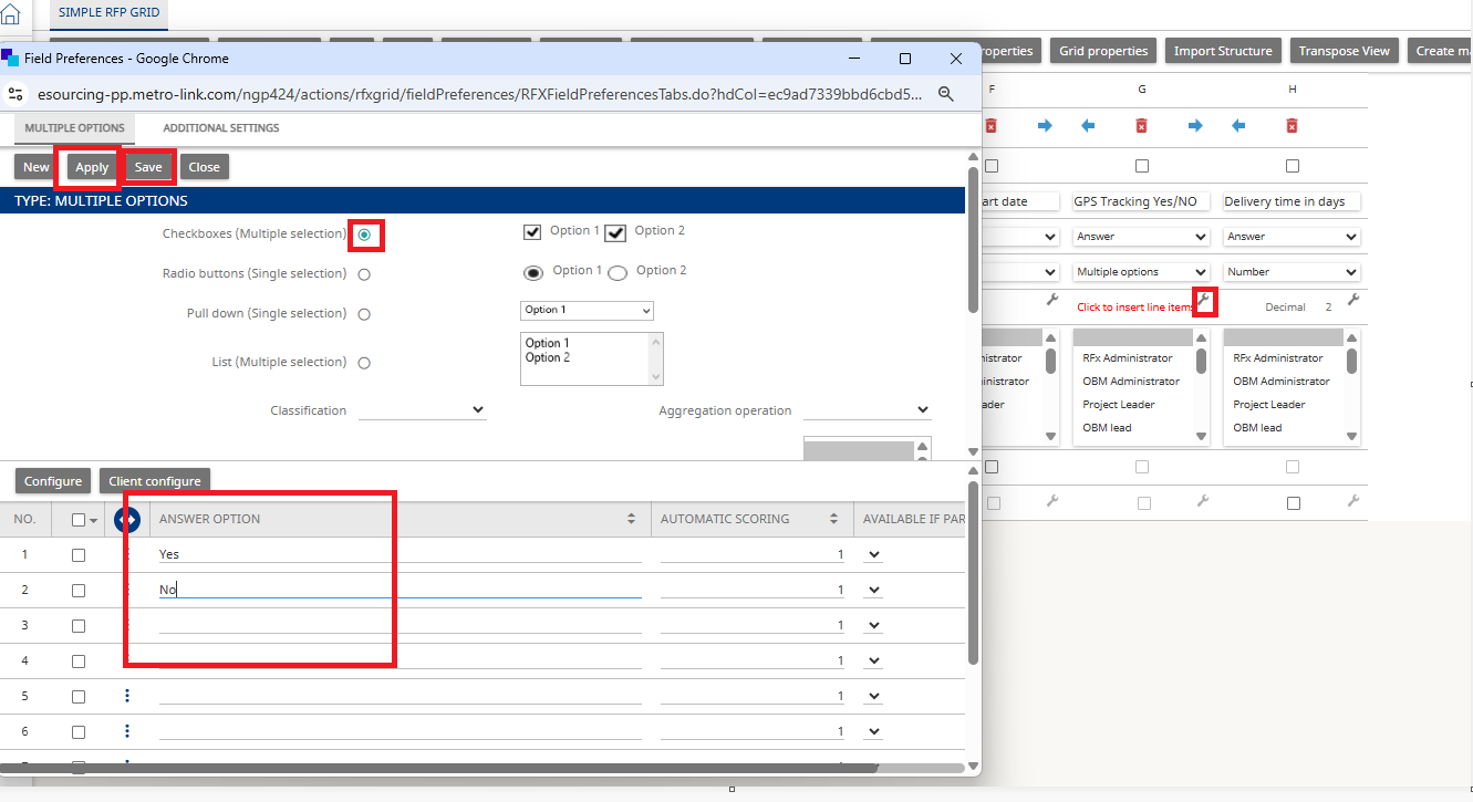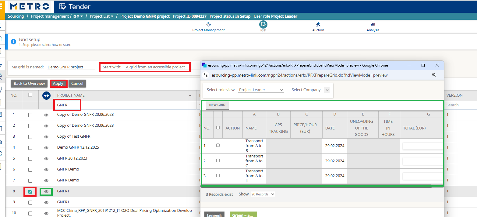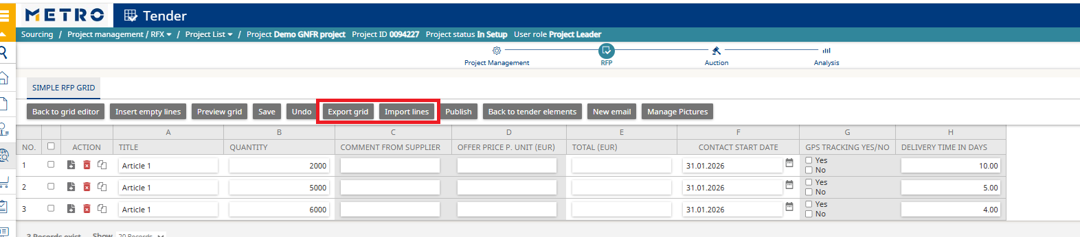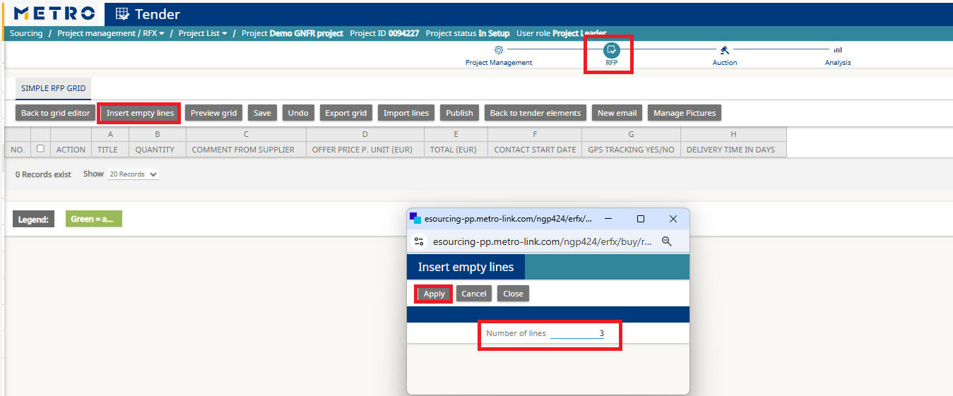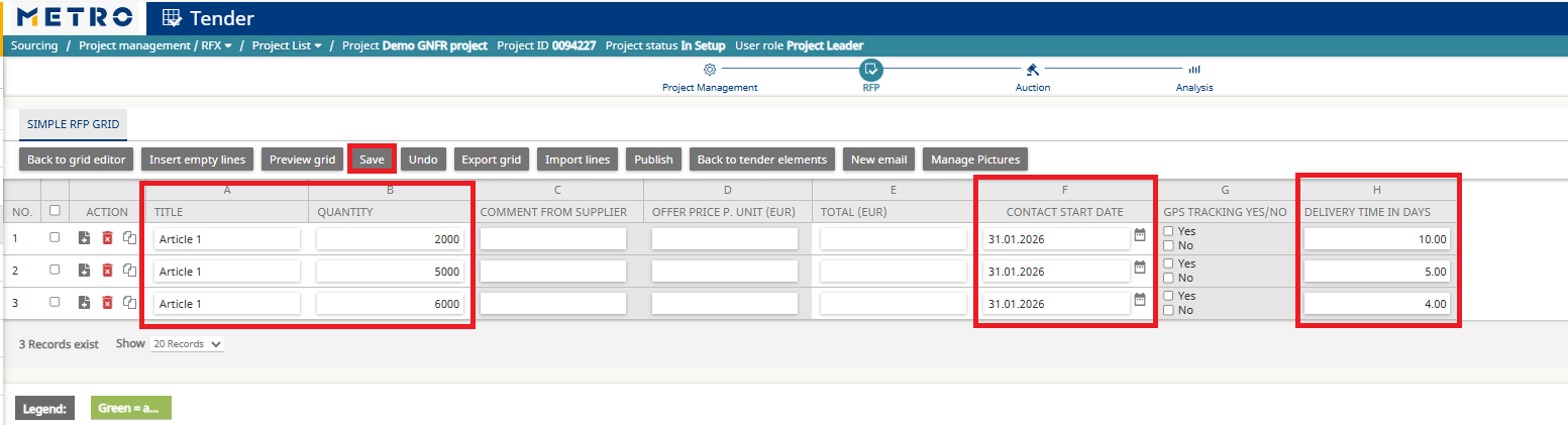 - To set up the RFP grid, go to the RFP tab and select New Grid.