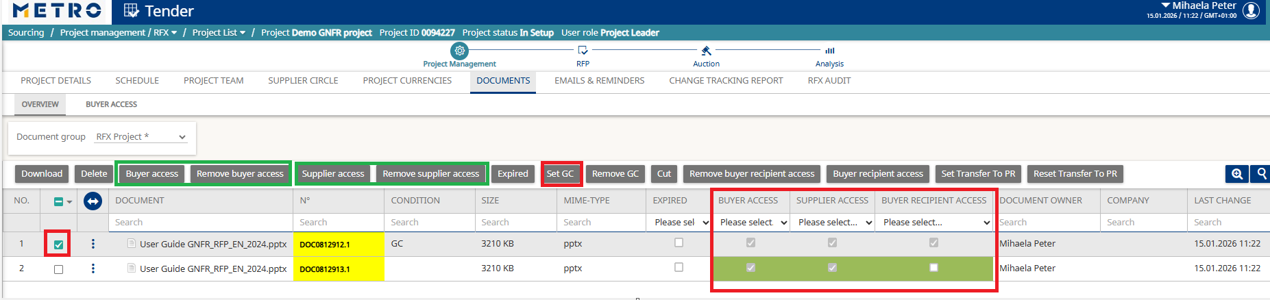 - Before publishing the RFP, at least one document must be set as General Conditions (GC).