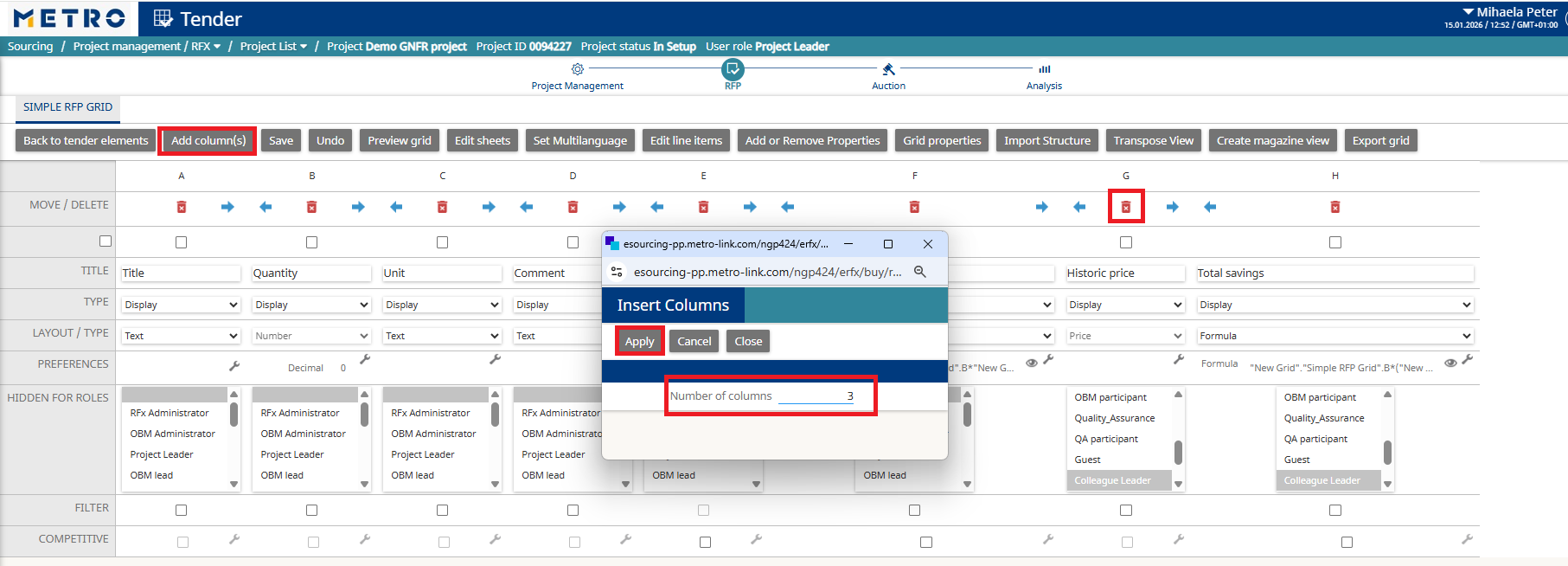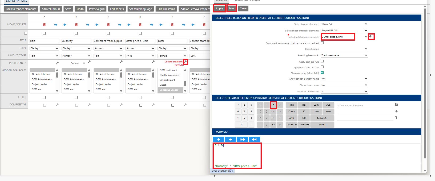 In the example below, the Total column is hidden for the Supplier role, meaning suppliers will not see it during the RFP.